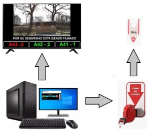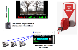 El cliente al llegar al local toma un ticket de atención del dispensador de tickets. Luego desde el punto de atención se observa personas esperando ser atendidas y con el programa instalado en su computadora se llama al cliente. Se utiliza un televisor para mostrar el numero de ticket que se esta llamando y la ventanilla que lo atenderá. El televisor también permite mostrar los videos de interés así como mensajes personalizados. El software permite tener reportes de atención, como numero de clientes atendidos por cada ventanilla y le tiempo que tomo atender a cada uno de los clientes.